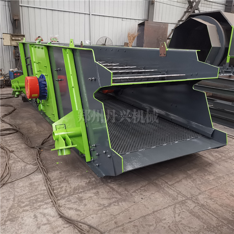 重物质由于重力作用直接落在重物接料输送机上,由卸料皮带输送机输送至运输车拉走。陈腐垃圾处理设备筛下物为粒径小的物料,一般为灰土类物质,由接料输送机输送至转料输送机,卸料在运输车上,运走、制作腐殖土。