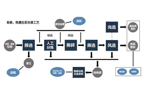 装饰垃圾资源化处理以前是照搬机制砂加工工艺和设备,但经过多年的实践,发现有许多不适应。主因还是因为原料不同。原材料的规格,尺寸,成分,硬度等基本一致,没有金属,木材等杂质。